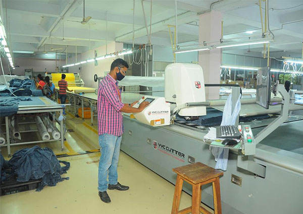 • Cutters guide electrically supported cutting machines around the perimeter of pattern pieces, cutting through the fabric stack